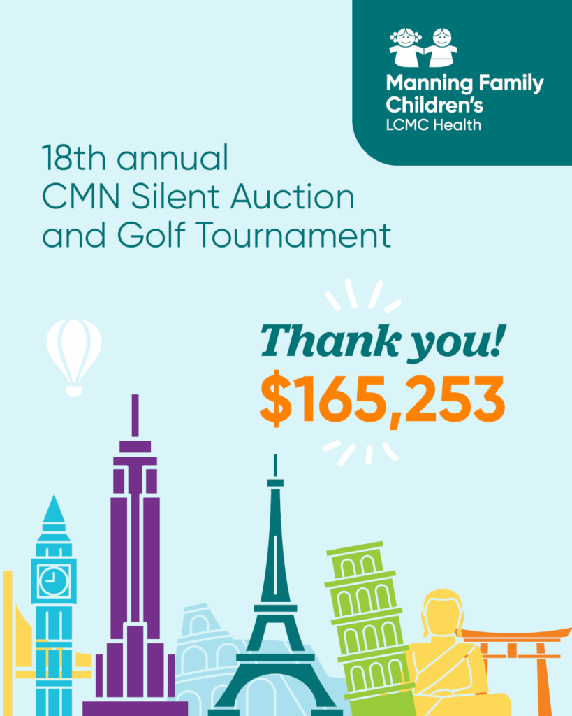 Thanks to the very generous support of auction bidders and sponsors, the CMN Auction & Golf Tournament, was an incredible success, raising more than $165,000 for Manning Family Children’s. The 18th annual silent auction included more than 150 exciting hotel packages from Marriott destinations around the world and the sold-out golf tournament tee-off at English Turn Golf & Country Club with 36-foursomes participating. These events are made possible, through our partnership with the Marriott New Orleans Business Council, through Children’s Miracle Network.