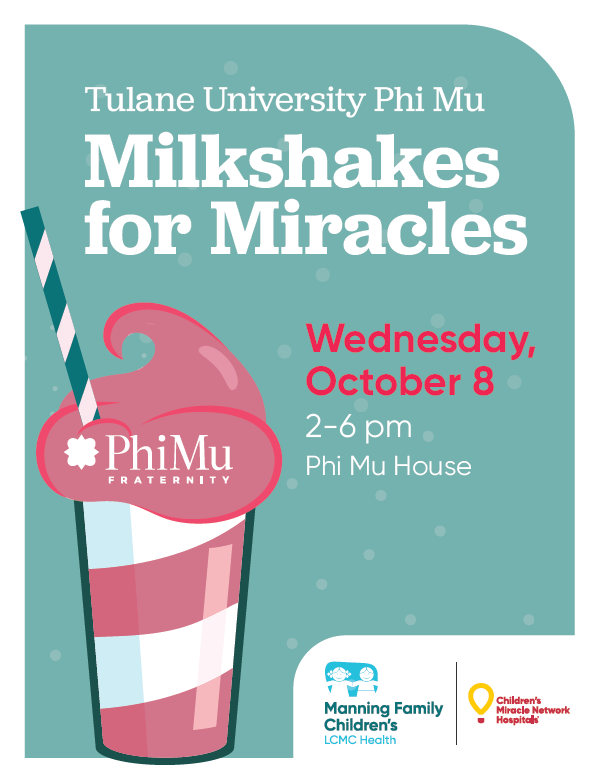 On September 24, Phi Mu at Tulane partnered with Yogurtland to host a giveback night. Their event raised more than $350 for Manning Family Children’s!